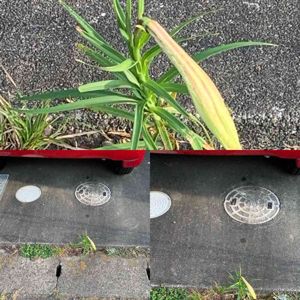 車庫前のコンクリートの隙間に生えてきてくれたタカサゴユリ。