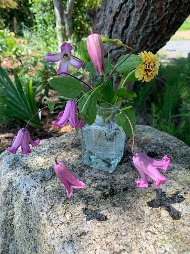 蔓の先でまだ咲いてたお花に折れてしまったジニアを添えて…
