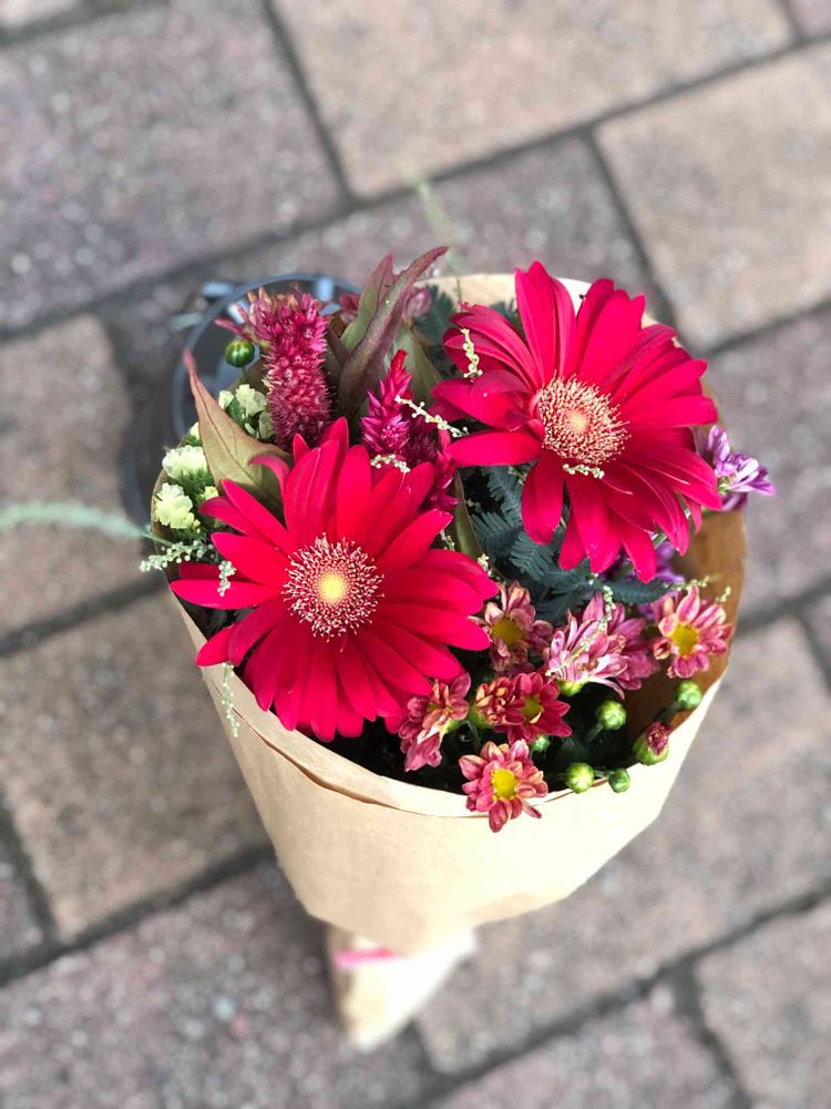 植物雑貨クリエイター養成講座の課題でギフト用の花束を作らなければいけなかったので、わいわい市でお花を買って来ました💐