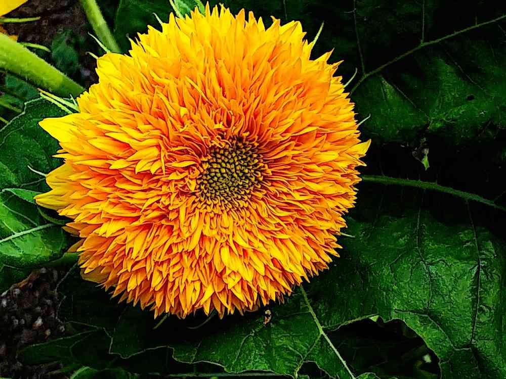 わー‼️スゴイ、、、こんなにたくさんの花びらがあるヒマワリ🌻、初めて見ました😲💦 ちょ〜八重咲きさんですね😍