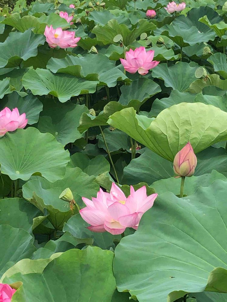 蓮の花がとってもきれいに咲いていました。葉っぱも大きい☘