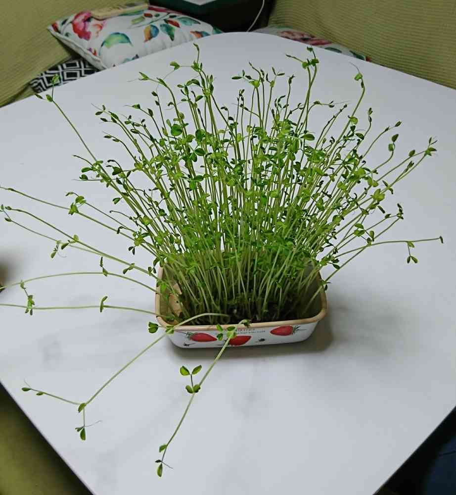 涼やかな鉢植えに癒されると思ったら、食欲も満たす豆苗で驚き(笑)