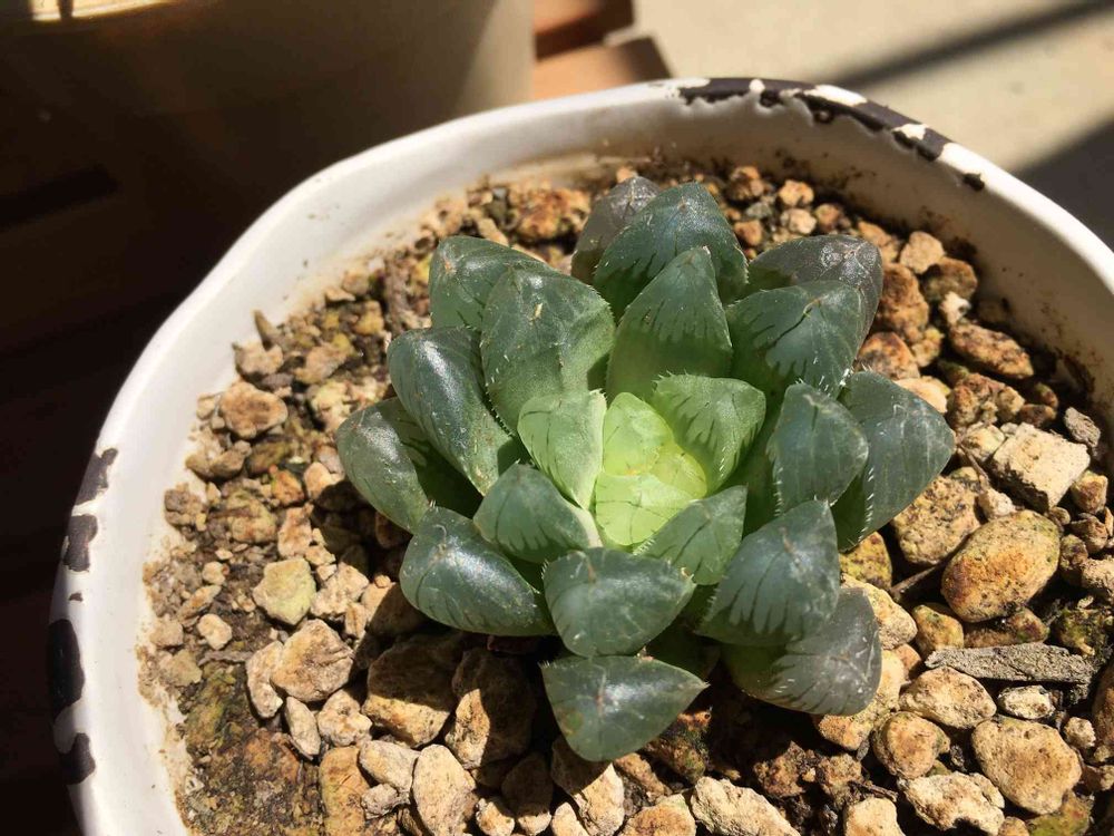 今日は先週に比べて過ごしやすい。ハオルチアさん、中心部の色が薄いです。