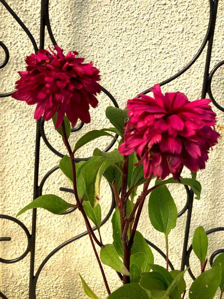 よく見る八重咲きと少し違う咲き方で茎が黒いんです😃