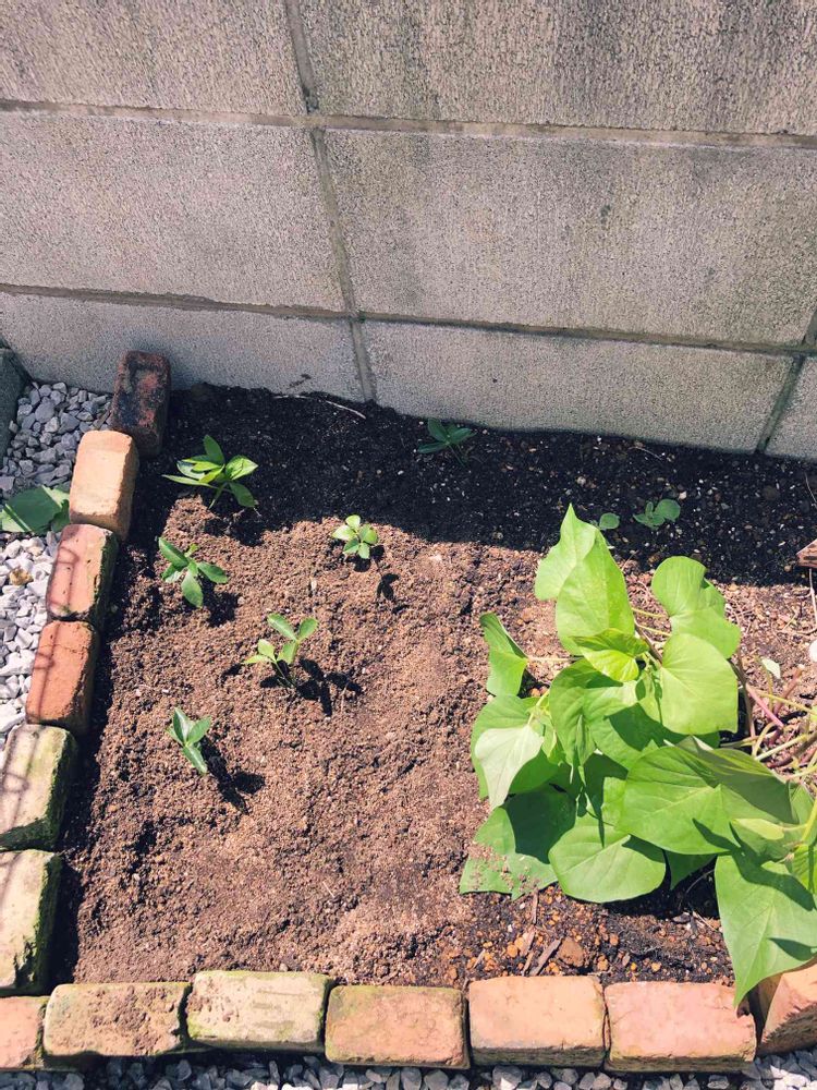 メルカリで届いたクリスマスローズをサツマイモの隣に植えてみた。