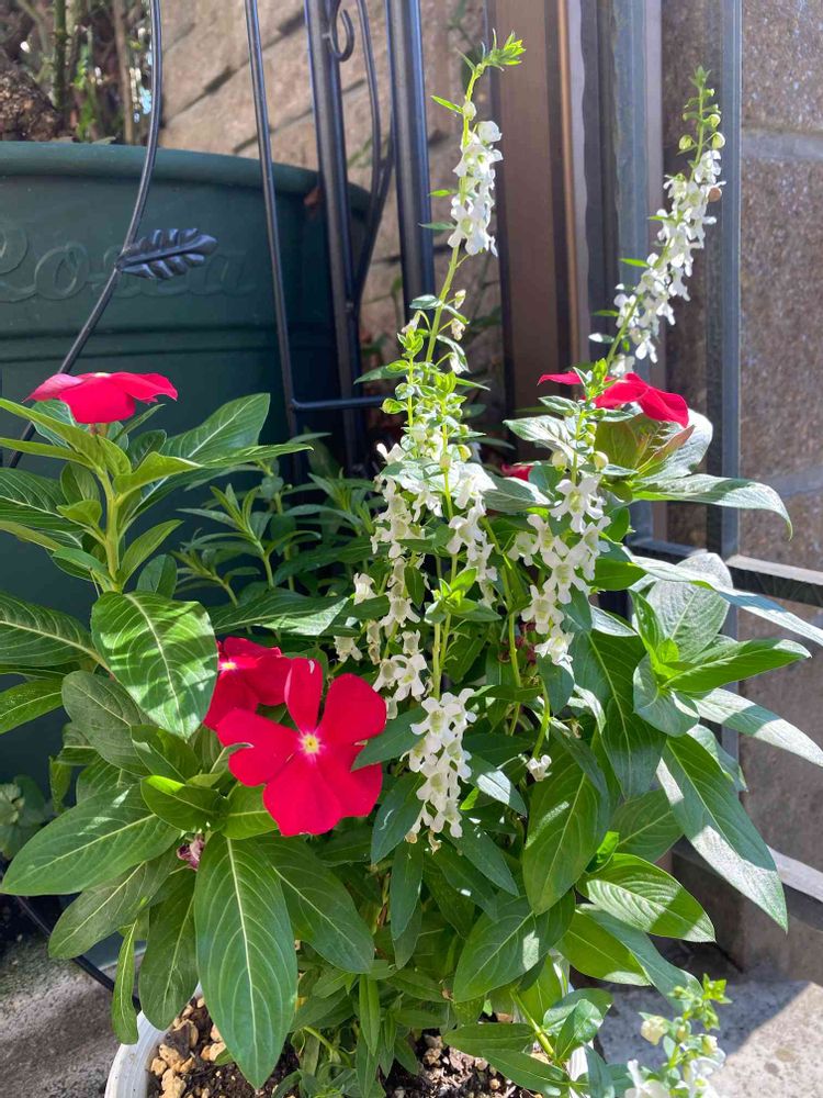 小さな庭,アンゲロニア セレナホワイト,ビンカ タイタン リアルレッドの投稿画像