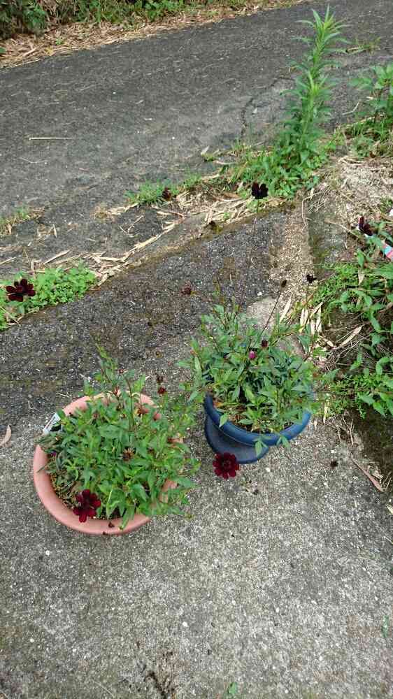 前回投稿したチョコレートコスモスです。梅雨独特の蒸し暑さで花が元気がなかったのでダイソーで水ゴケを買って株の回りに敷いてあげたら程よく水分調整が出来たみたいでだいぶ元気になりました。暑さに弱い花には効果的です。