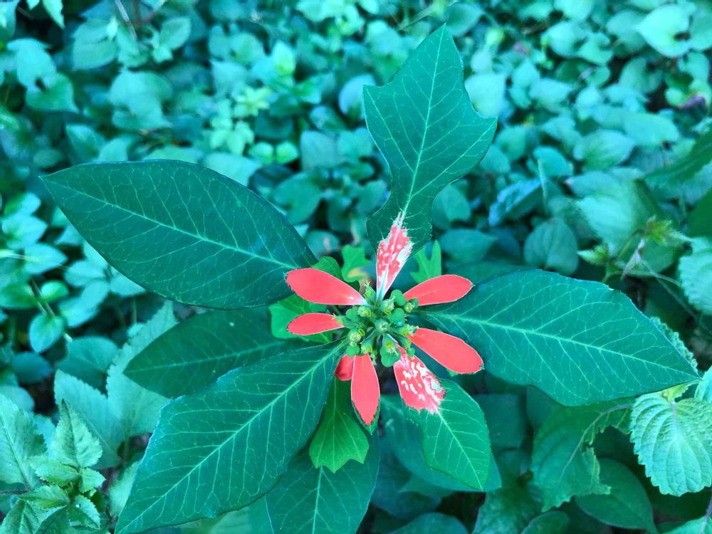 あのクリスマス時期のポインセチアとそっくりですが、夏しか咲かないサマーポインセチアです。毎年咲きます。