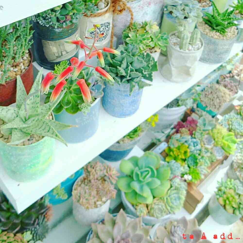 白い棚が、アロエちゃんの花で、ルンルン🎶だね(*˘︶˘*).。.:*♡