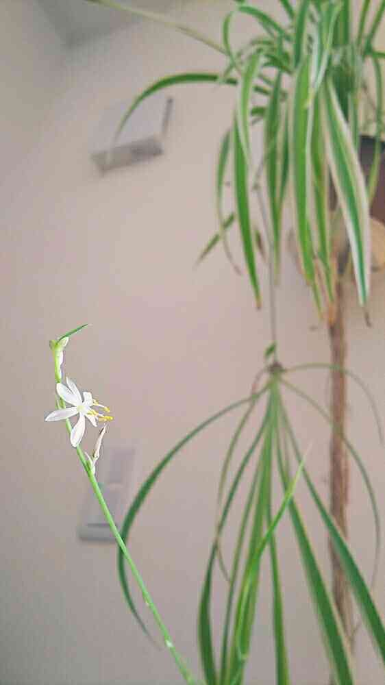 この植物、緑と白が逆だしオリヅルランとは違うのかなと思ってたけどでもこのお花オリヅルランで間違いないのかな。