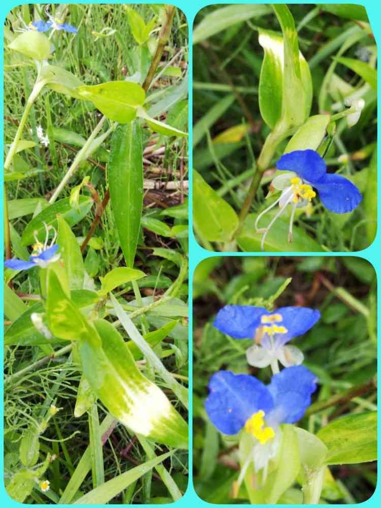 💠ツユクサの葉が☀️暑さて焼けたのかな?!斑入りになってました💦花は普通の色です💙💚