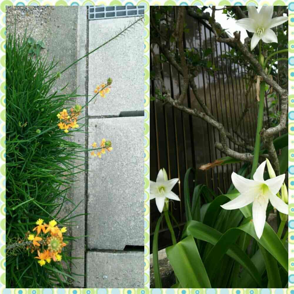 お買いもの行く途中で、見つけた珍しい花、白い方はググってみて、アフリカハマユウかな?⁉なんて、黄色い方はわかりませんでした。誰か分かる方教えてください☺💞