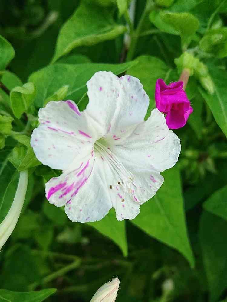 ウンウン一枝に白とピンクや、黄色とピンクはオシロイバナあるあるですよ😃🎶
