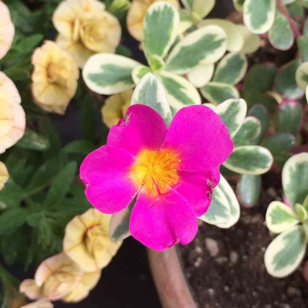 斑入りのポーチュラカの1番花咲きました🌸(*ฅ́˘ฅ̀*)