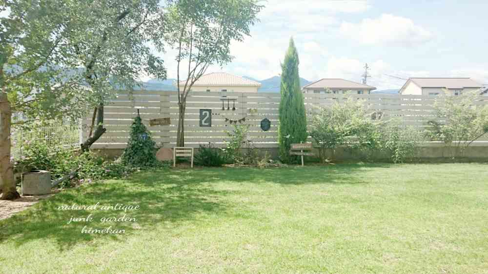 元々は左側にちょっと見えてるフェンスでお庭を一周していましたが、丸見えだし、見た目もいまいちだったので、既存のフェンスに木製フェンスを取り付けて雰囲気を変えました(o´罒`o)