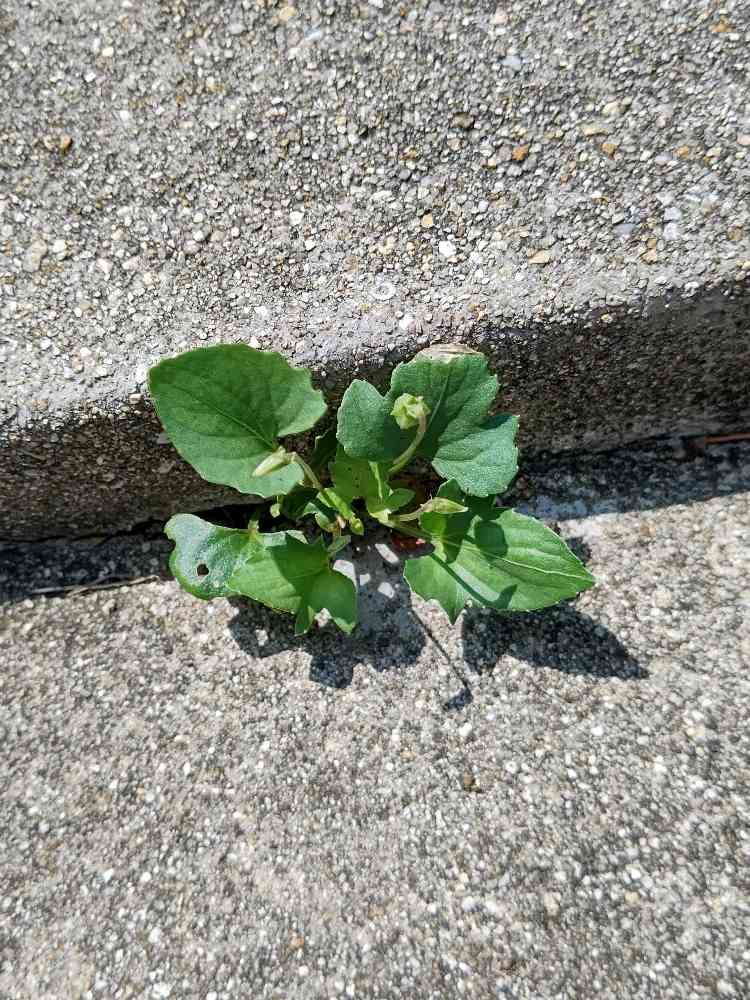 コンクリートの間から元気に水も貰えないのに咲こうとしてますね