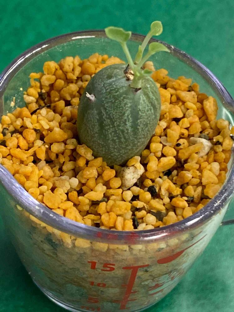 ダンナのデスクに置いてある、ミニチュアカップに入った七宝樹🌱