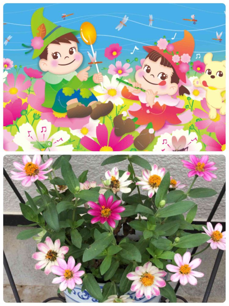 可愛い❣️コスモスの中のペコちゃん可愛い過ぎだよ❤️これは、画像ピックアップしたの?