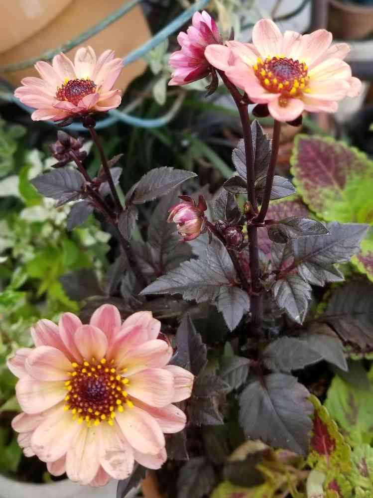 銅葉色の葉っぱ、微妙な花の色、たまりません💕
