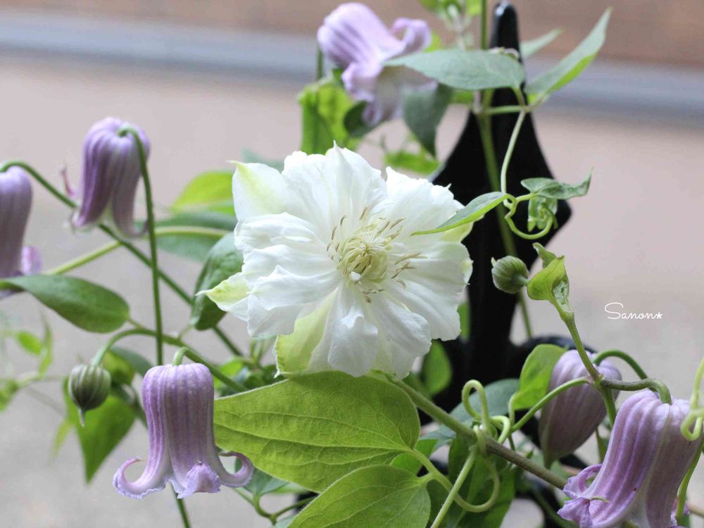 タイニーポップと白いクレマチスのコラボ素敵ですね✨