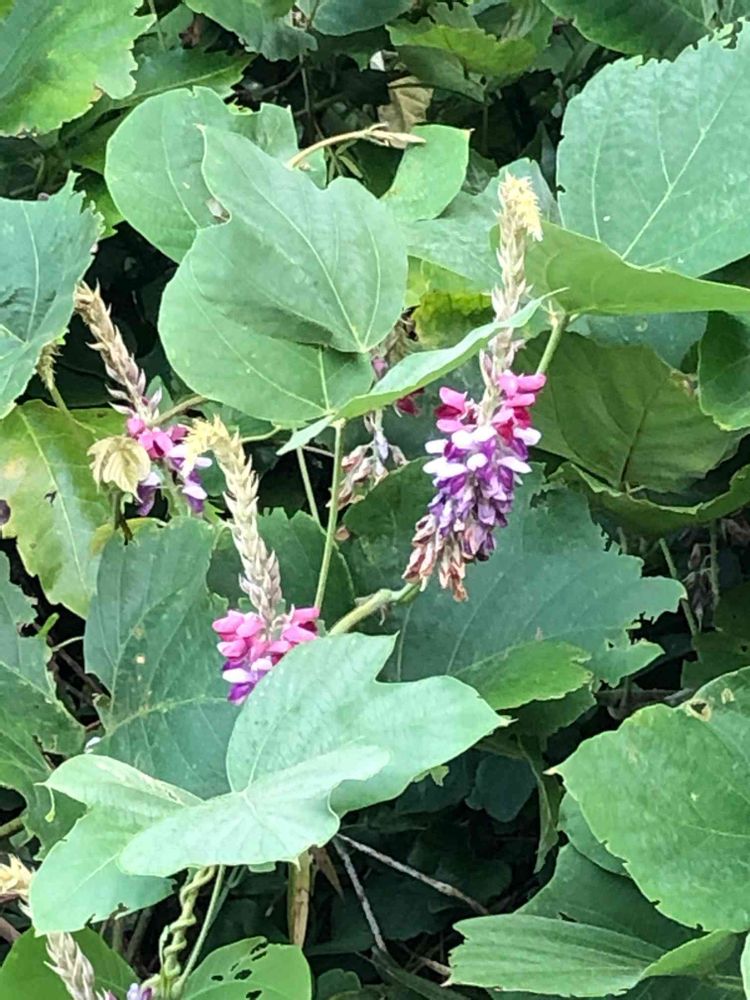 大きな葉っぱの影に赤紫色の花を見つけました。