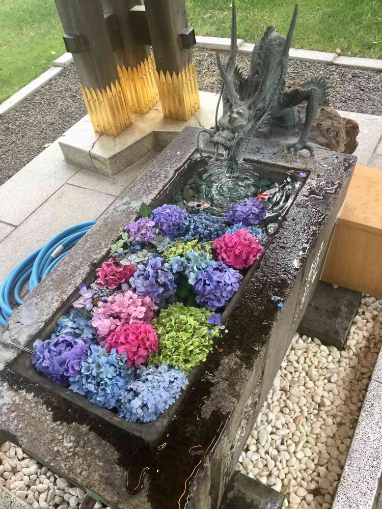 近所の小さな神社⛩️ 手水舎をアレンジメントフラワーで華やかに彩っていることを最近知りました^_^ 季節の移り変わりを記していこうと思います🪷