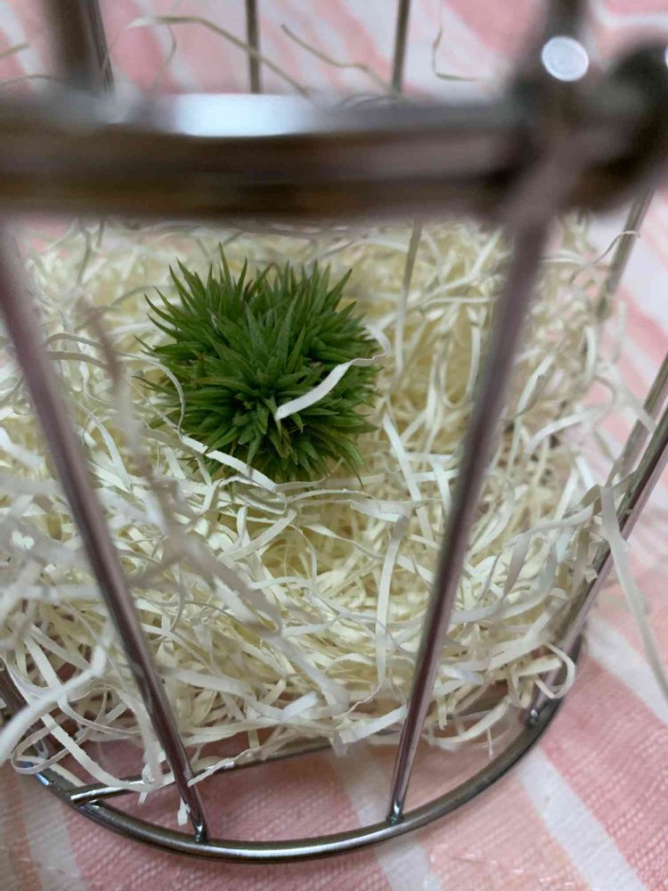 届いた時の緩衝材が鳥の巣に見えたので、とりあえず鳥かごに入れましたが…このまま飾っときたいわ(笑)