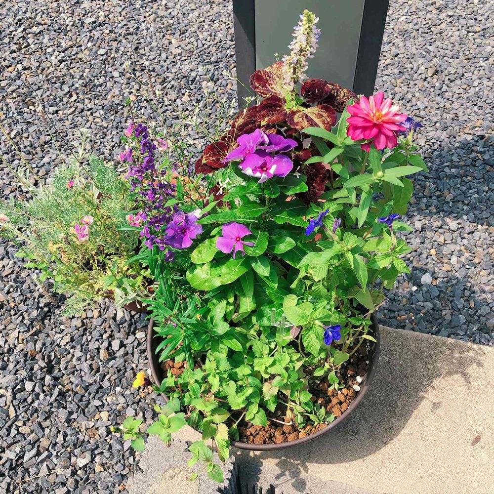 紫、青、ピンクと好きな色ばかり。寄せ植えの勉強になります。