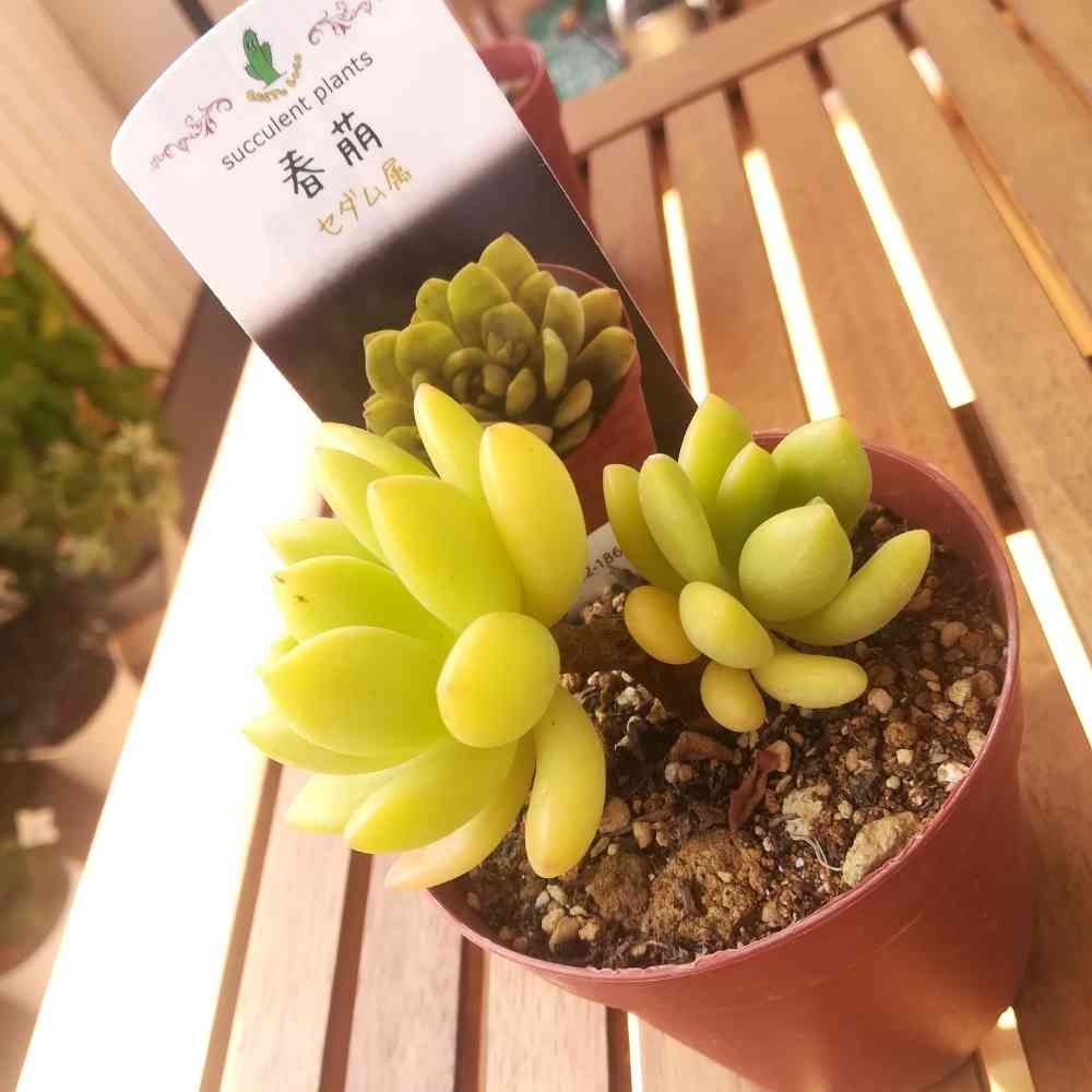 先日連れ帰った多肉ちゃんトリオのセンター、セダム属の春萌ちゃんです☆黄緑色の風船のように肉感たっぷりな質感が、食べちゃいたくなるぐらい可愛い子です(*´▽`*)