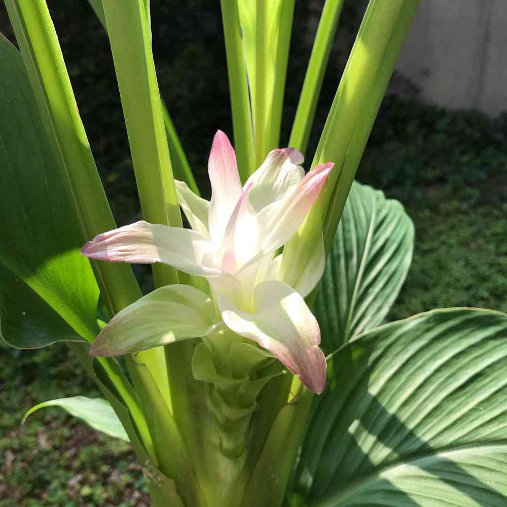 昨年9月に植え付けて育てているオーレナ(ウコン)の花がはじめて咲いてくれました!