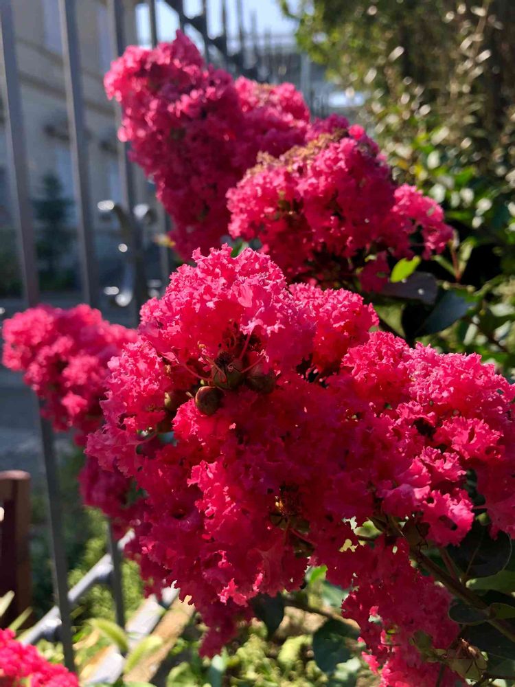この季節、百日紅はあちこちで咲いていますね。夾竹桃、芙蓉、百日紅がとりわけ目を引くように感じます✨
