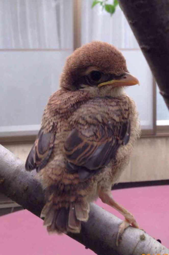 そっと手を出したら乗って来ました。近くで親鳥が心配そうにけたたましく鳴いてましたがいたって当人(当鳥)は好奇心旺盛のようで…巣から落ちたのかと思ったら巣立ちの頃は訓練のためあまり飛べなくても普通にこういう事はあるらしいです。ネコに捕られないか心配してましたが3日もしたらよく飛ぶようになり高い枝や電線に往き来してたのでもう安心。4日目には巣立っていったみたいです。