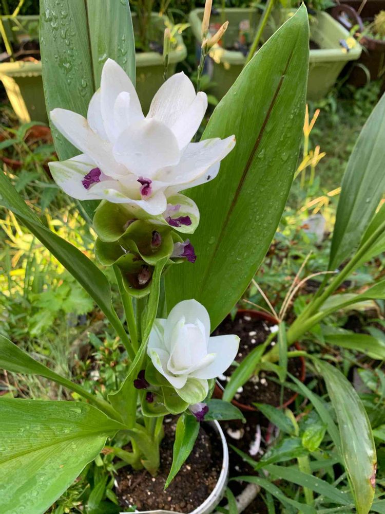 さん、あはは🤣 観賞用に改良されたウコンだと思いますが、透き通るような白の花(苞葉)を見ていると二日酔いに効くかも!です。