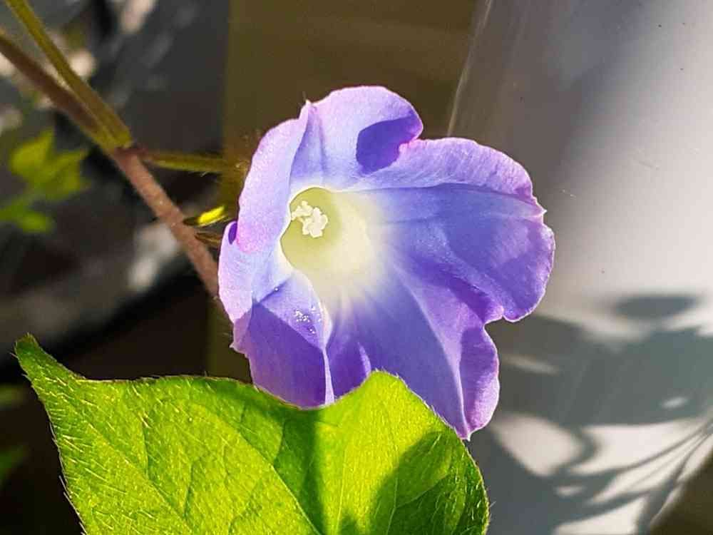 いつの間にか自転車🚲にからんでいた朝顔、やっと開花しました