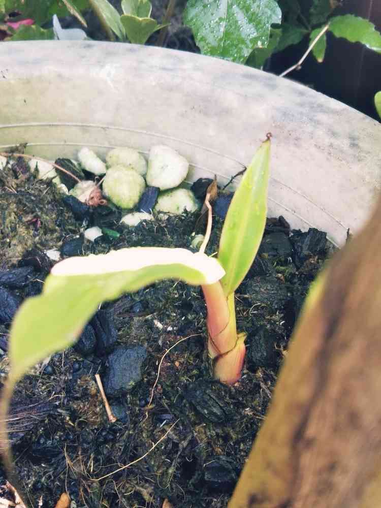 ミニバナナ(ピンクバナナ🍌)のヒコバエが世代交代を待ちわびてます。