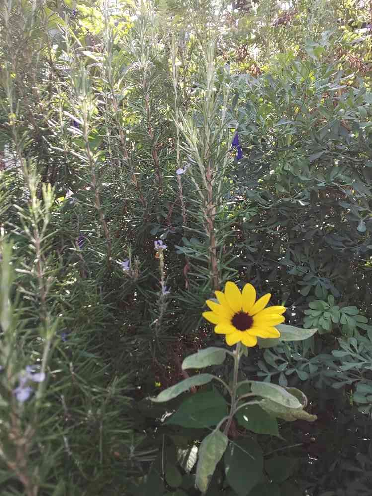 ローズマリーやハーブ🌿ルーに圧迫されながらも💦懸命に花咲かせた小さなひまわり🌻✨💕