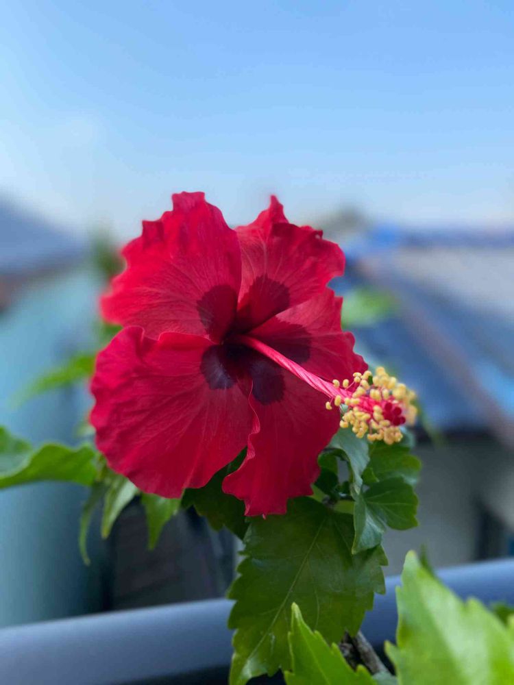 小さなベランダに今朝も咲いてる🌺レッドマジック〜癒されます。