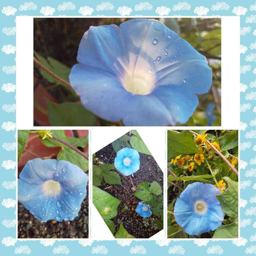マンション内の花壇に水色の朝顔涼しげに咲いてました…汗💧?…🌱🚿ミズ…のようね!🤭ウフフ…