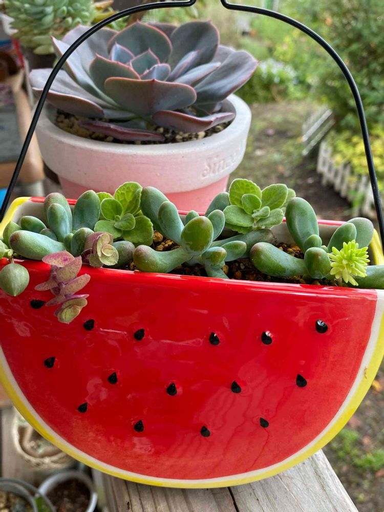 多肉ちゃん植えて見ました🌿スイカの真っ赤な色に元気と癒しを貰えます♥️💚