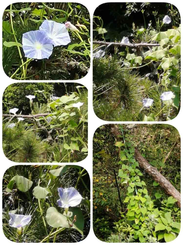 松の木の根本から伸びて伸びて天辺で咲きだしてます🌼💙✨