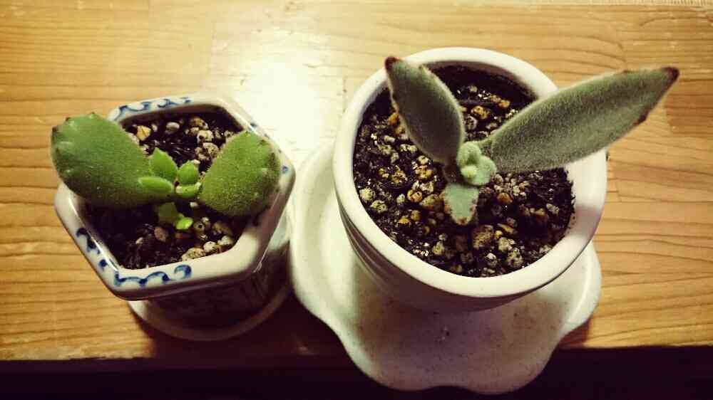 1週間で、新芽にかわいい爪ができた熊童子さん。月兎耳さんも元気です♪
