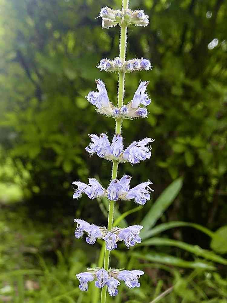 シソ科アキギリ属の多年草。山野の草地に生える。葉は対生し、3~7個の小葉からなる奇数羽状複葉。花期は7~11月、最盛期は秋だが夏から咲きだす。青紫色の唇形花を数段輪生する。雄しべははじめ上に伸びて虫の背中に花粉をつける(雄性期)が、花粉がなくなると下に屈し、今度は雌しべの柱頭が開き受粉する(雌性期)。果実は分果。宿存萼の中に4個。