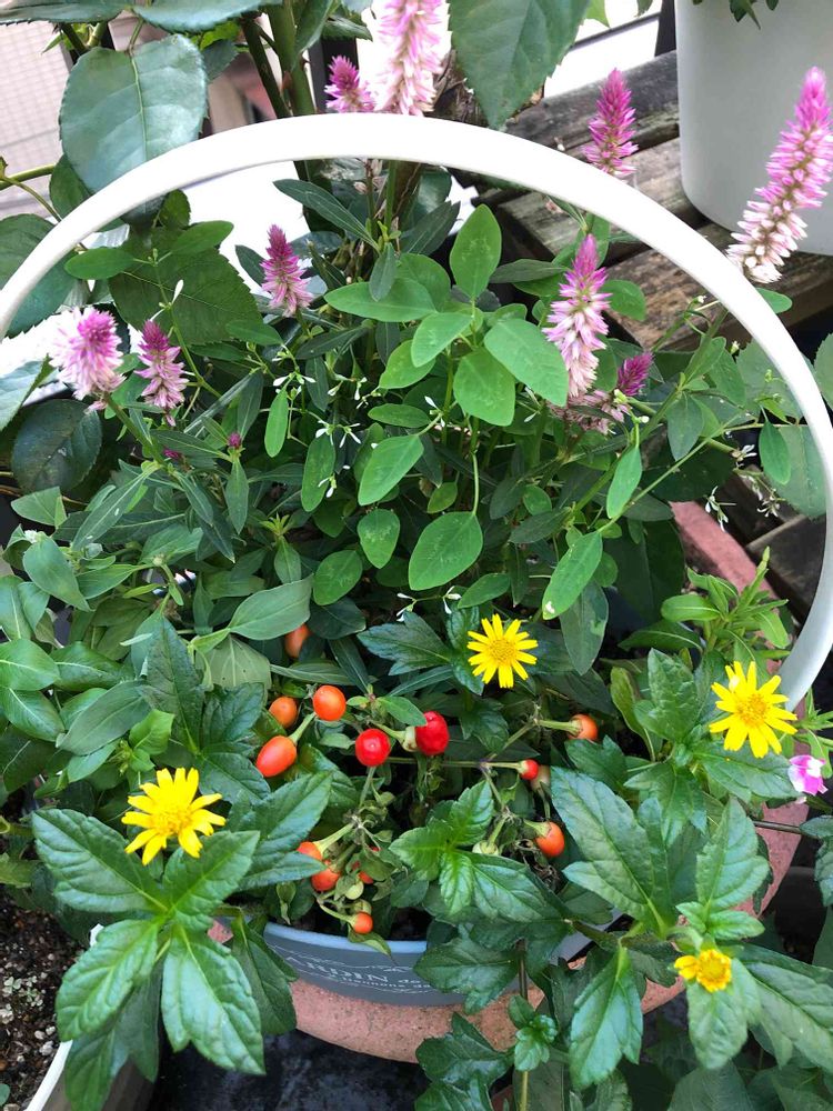 小さな庭,ケイトウ(鶏頭),五色とうがらしの投稿画像