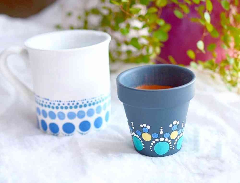 丸やドットだけでこんな爽やかなリメ鉢が出来るんですね😊