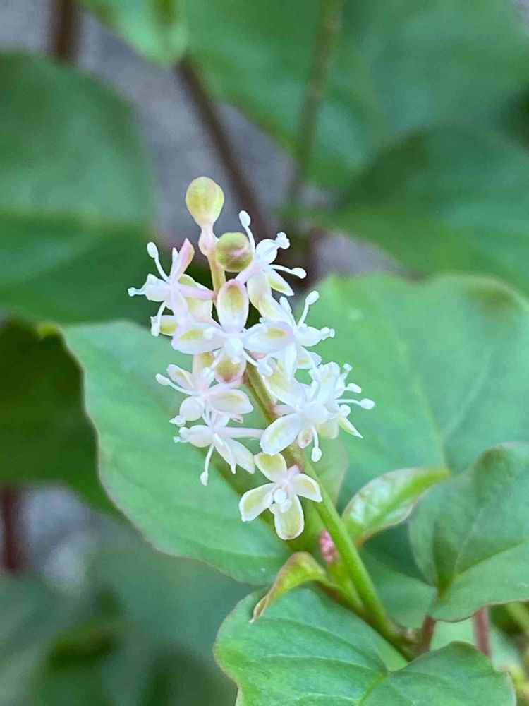ジュズサンゴ(レッド)の花が再び枝先にいくつも咲き出しました。