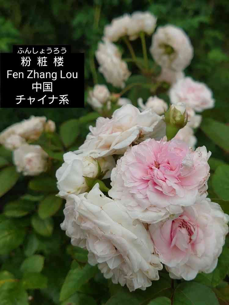 ※粉粧楼は、ずっとチャイナ系オールドローズと言われてきましたが、2007年に実はヨーロッパの薔薇ポリアンサ〈クロチルド スーペール〉と同じ品種であることがわかったそうです。
