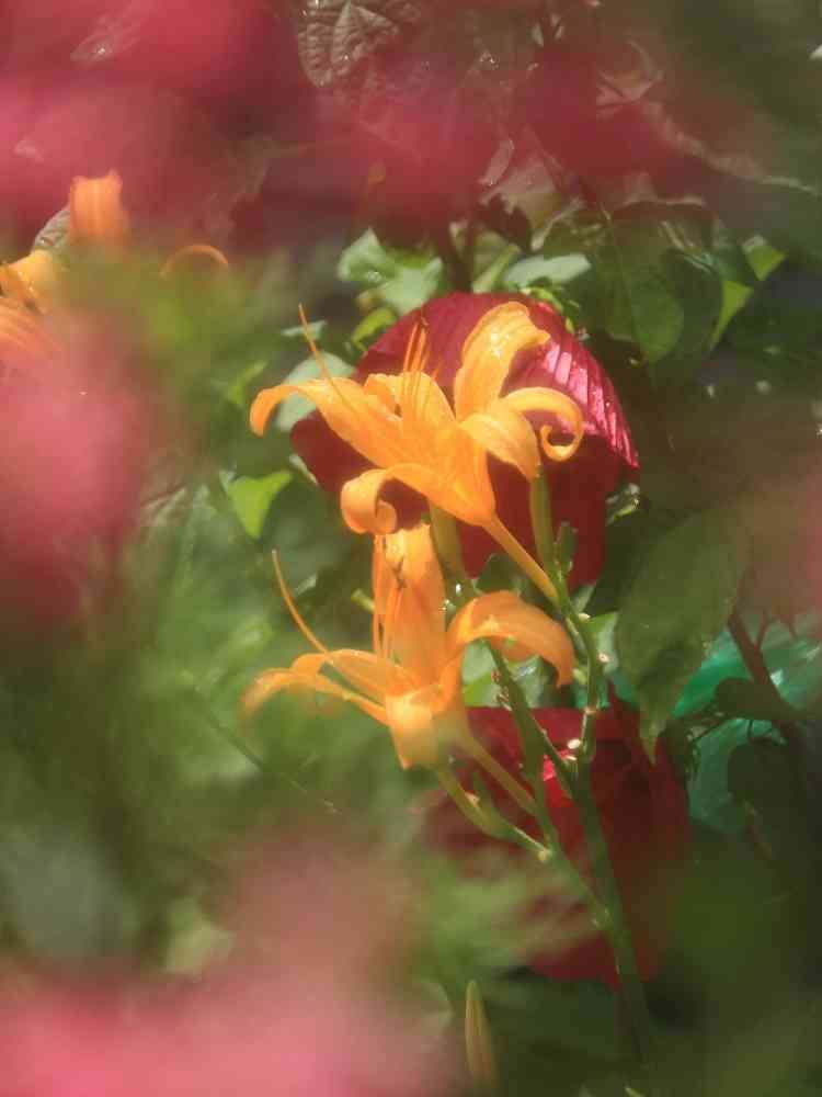 雨上がり🌈水滴探す途中、サルスベリの向こうにワスレグサもキラリ❇️⚜️