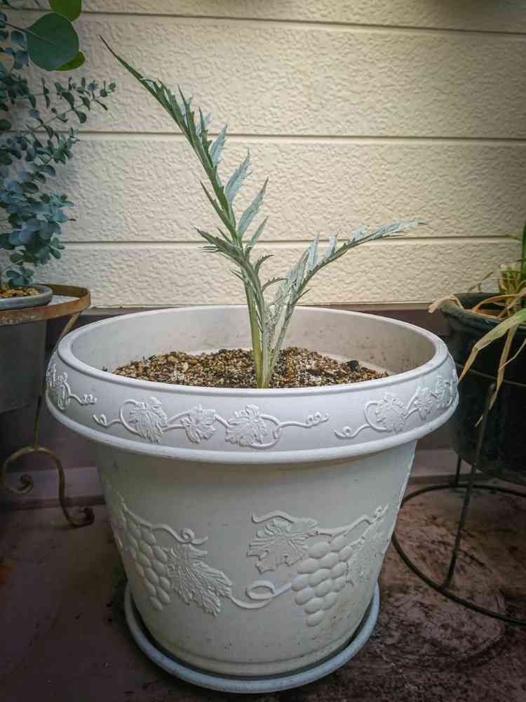 2月の鉢上げ時と同じくらい小さくなってしまったアーティチョーク。