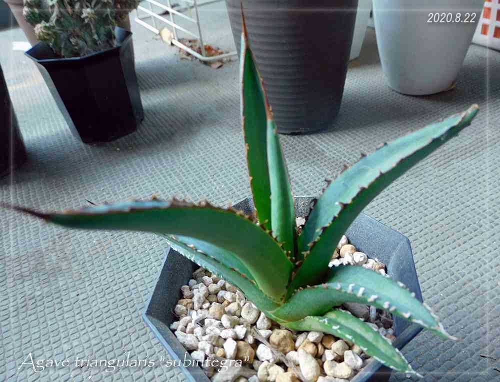 アガベ、トリアングラリス・スビンテグラ。すっきりスマートな葉がかっこいい。先端の棘がもろいそうなので気を付けないと。