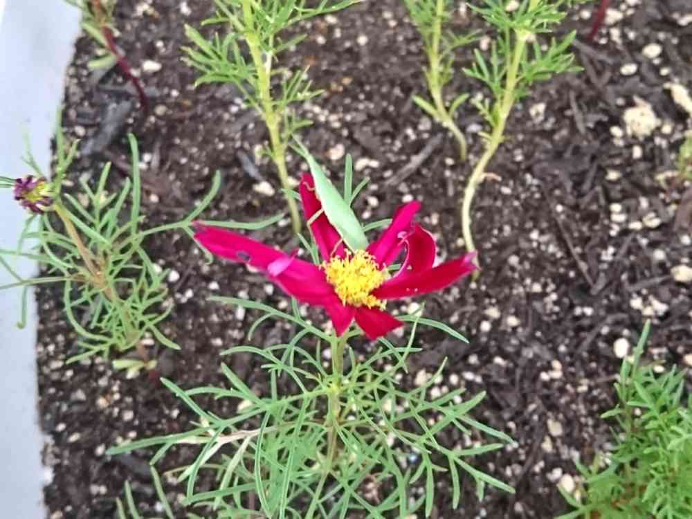 今月はじめに種を蒔いて、今日初めて咲いたミニコスモスさん💠